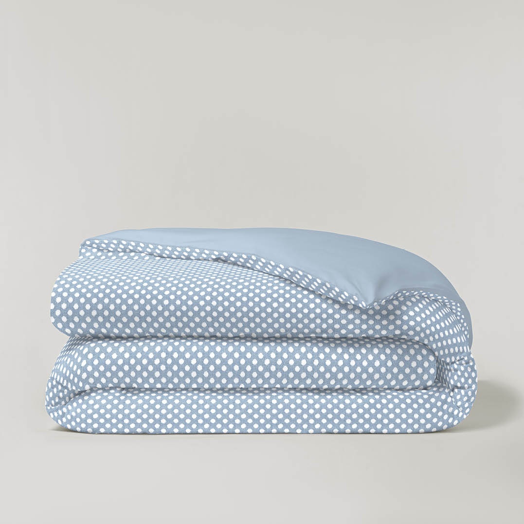 Dale estilo a tu cama con este duvet reversible gris con topos blancos. Suave, resistente y de fácil planchado al combinar el 50% de algodón con 50% de poliéster.