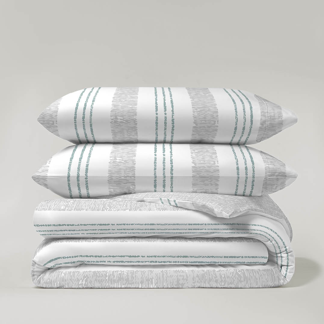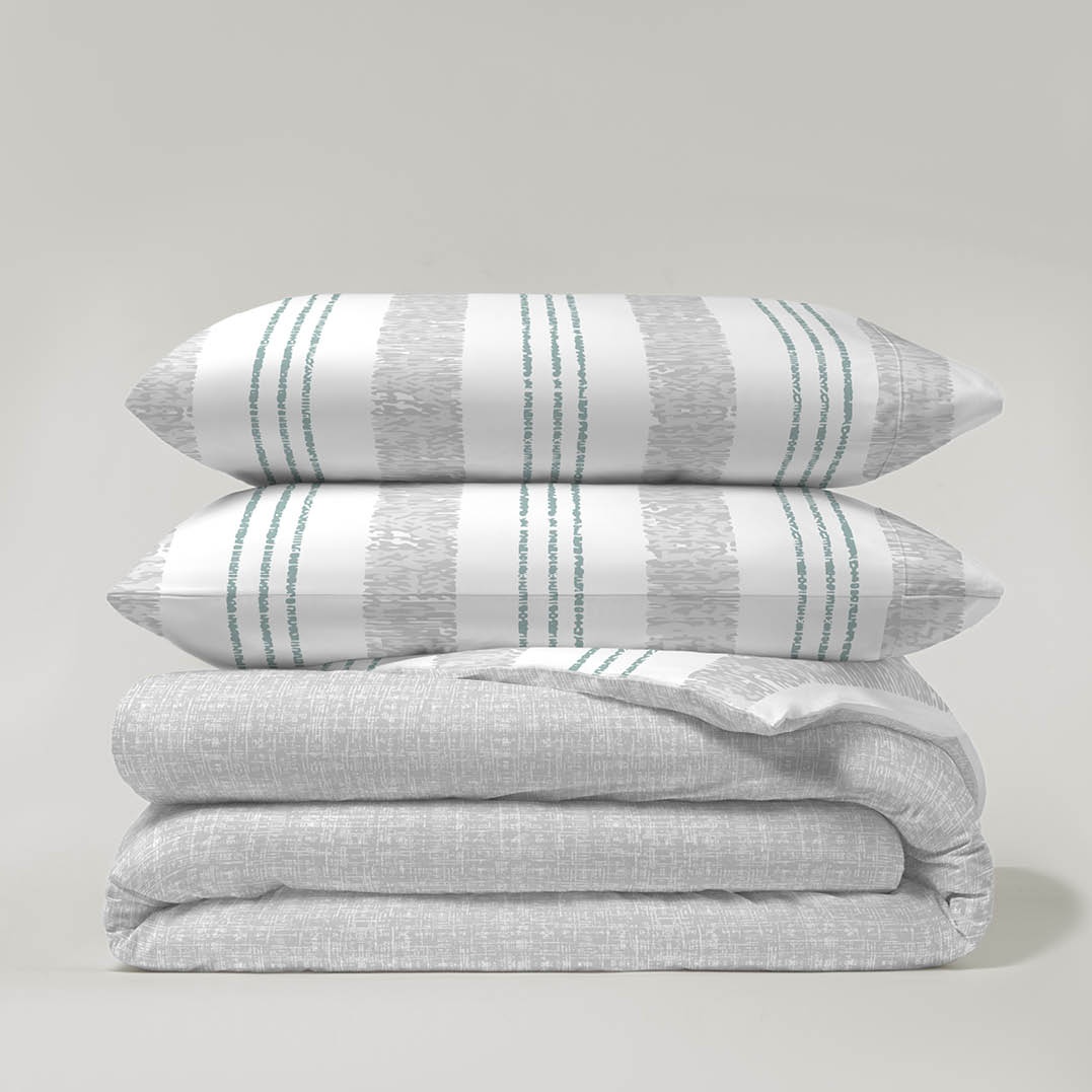 La funda nórdica Aneika está confeccionada en una mezcla de 50% poliéster y 50% algodón, lo que garantiza suavidad, transpirabilidad y fácil cuidado. Su diseño reversible te ofrece dos estilos en una sola prenda: por un lado, un elegante estampado de raya y por el otro, un diseño liso que aporta calma y sencillez a tu dormitorio.