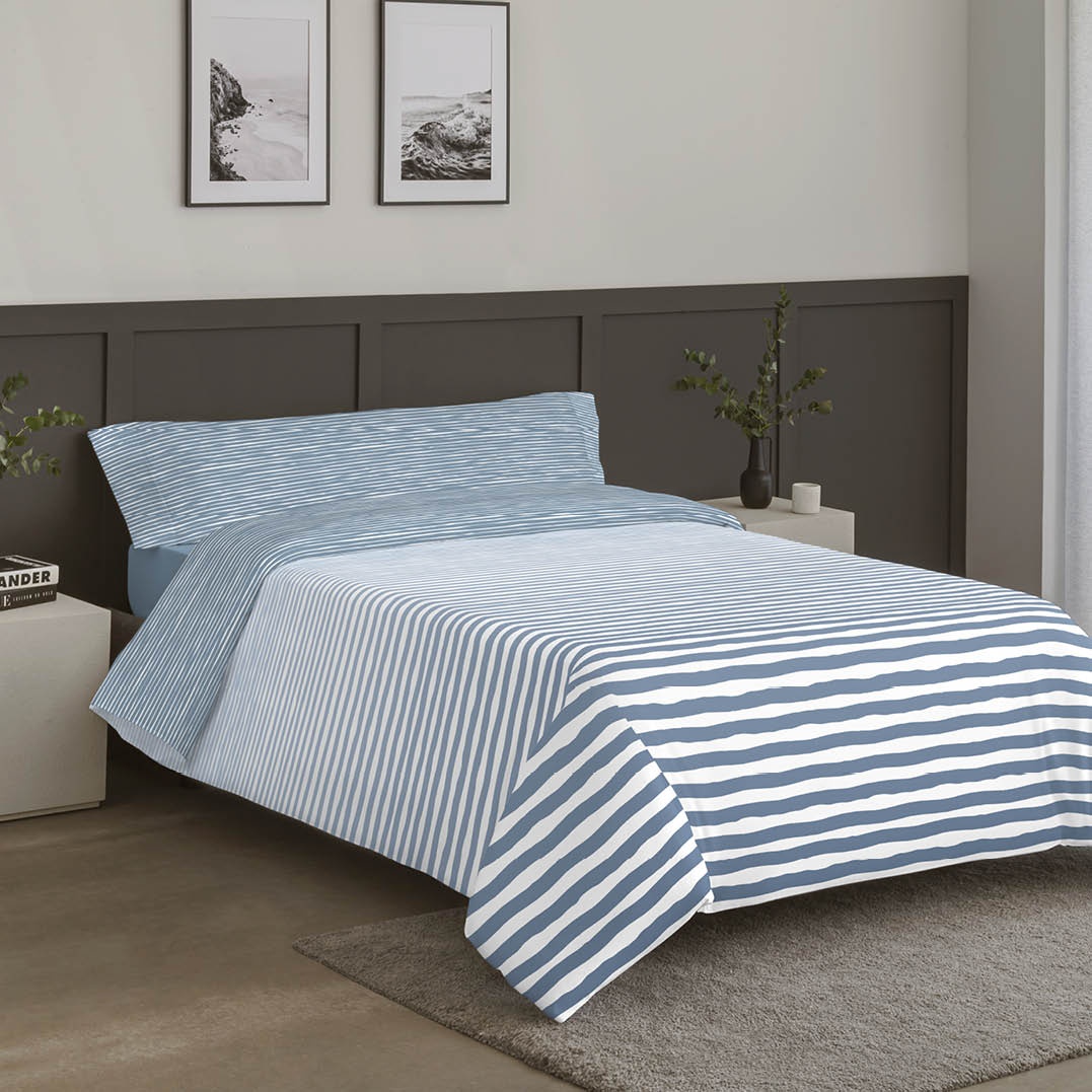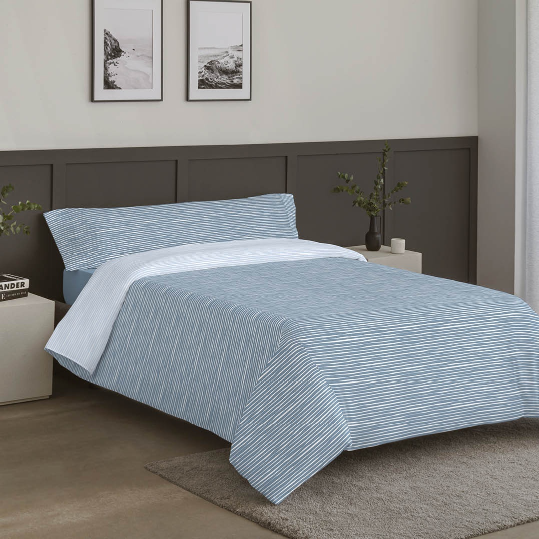 La funda nórdica Max combina estilo y practicidad con su diseño de rayas irregulares ideal para dar un aire moderno y natural al dormitorio. Su diseño reversible te permite disfrutar de dos estilos distintos en una sola prenda, adaptando la cama según la ocasión.
