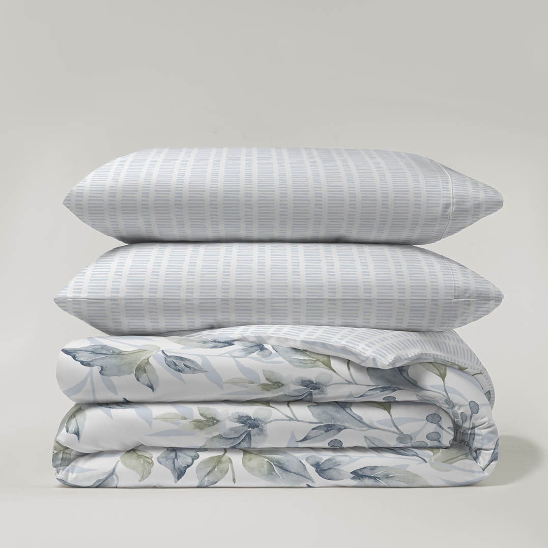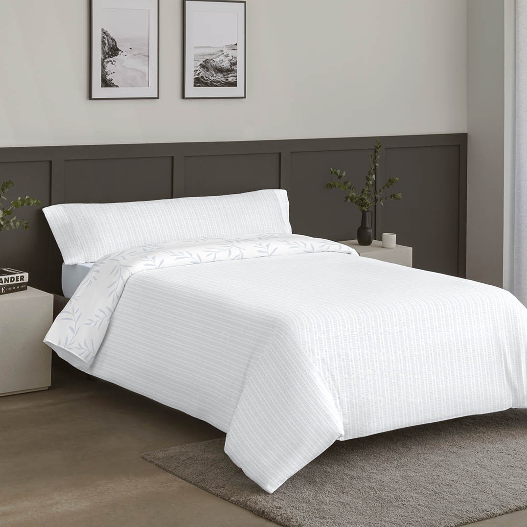 La funda nórdica Cristy aporta frescura y elegancia al dormitorio con su diseño floral. Su cara reversible ofrece un patrón de finas rayas, lo que permite cambiar el estilo de tu cama con un simple gesto.