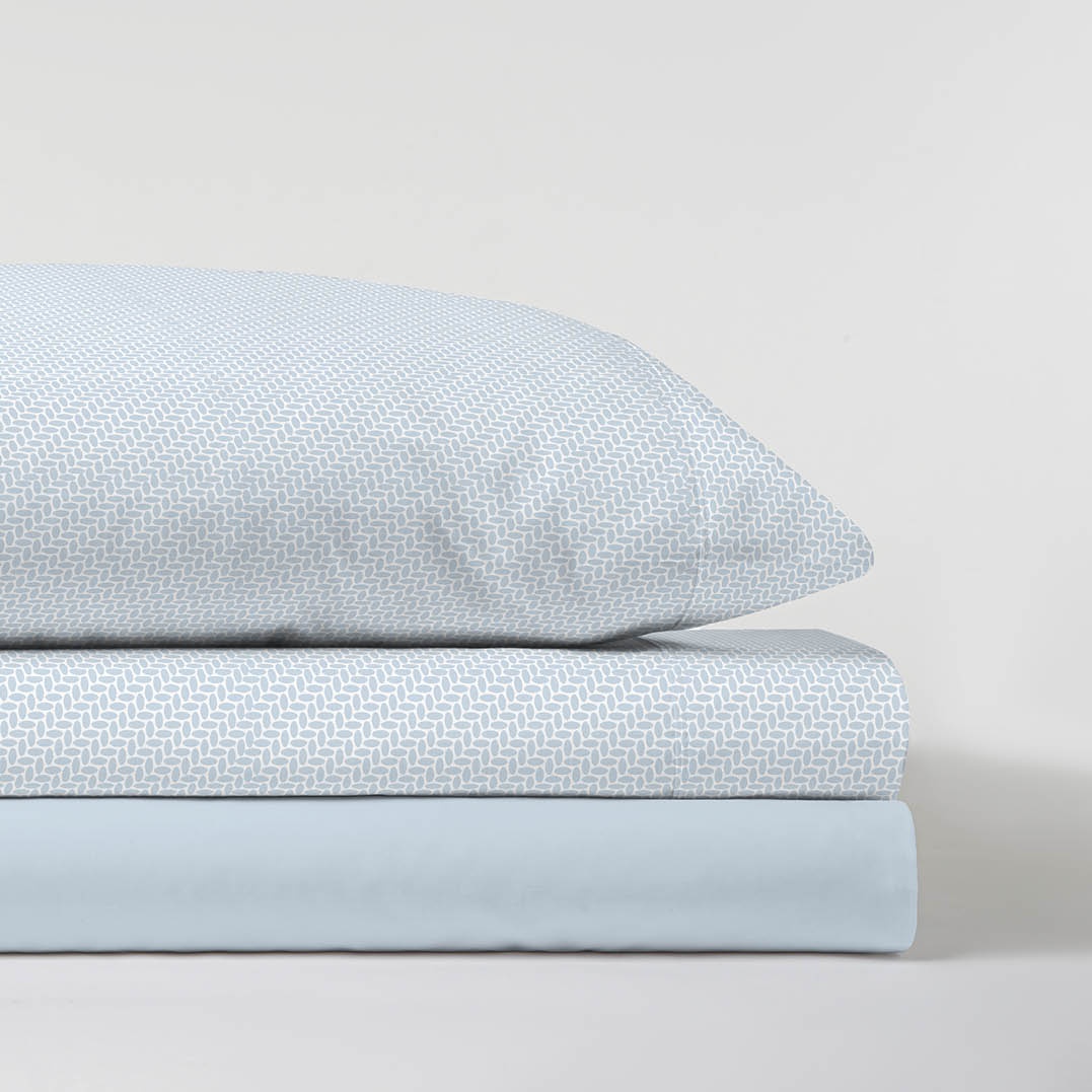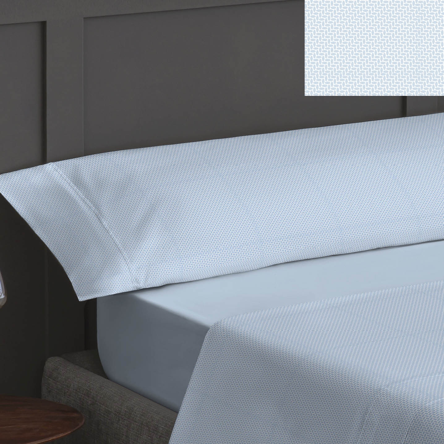 Funda de almohada geométrica semilisa, válida para cualquier ambiente. Confeccionada en tela de 50 poliester y 50 algodón.