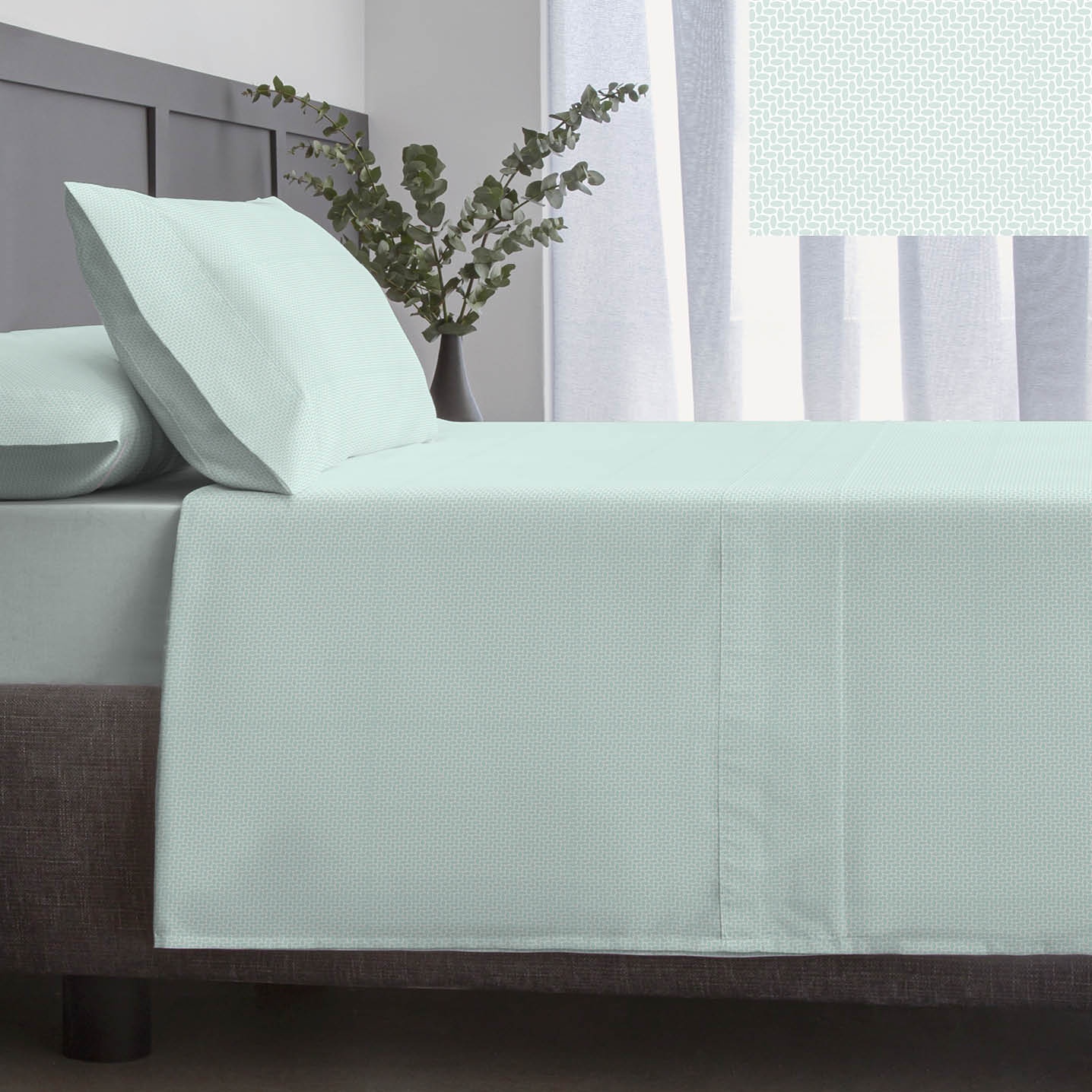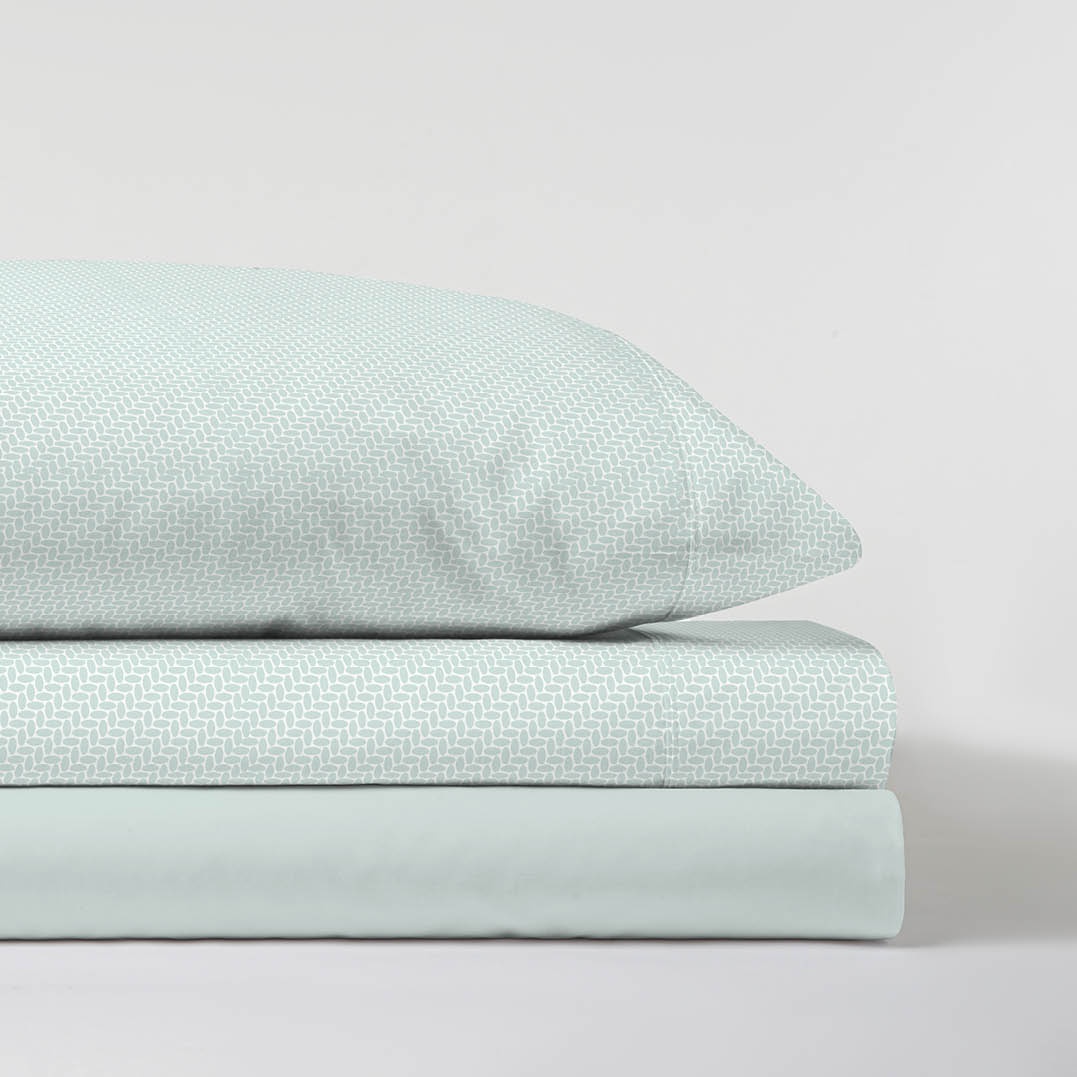 Funda de almohada geométrica semilisa, válida para cualquier ambiente. Confeccionada en tela de 50 poliester y 50 algodón.