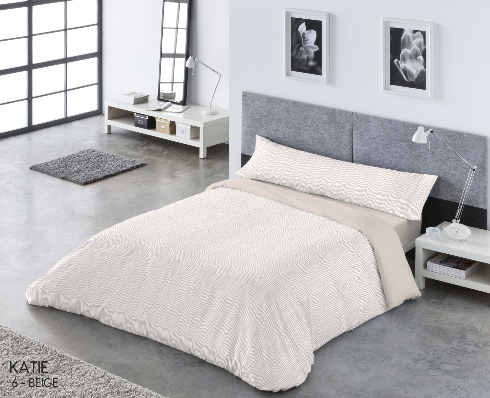 Aporta un estilo moderno y minimalista a tu dormitorio con la funda nórdica Katie. Su diseño con delicadas líneas onduladas crea un ambiente elegante y sereno, perfecto para quienes buscan sencillez y sofisticación a la vez.