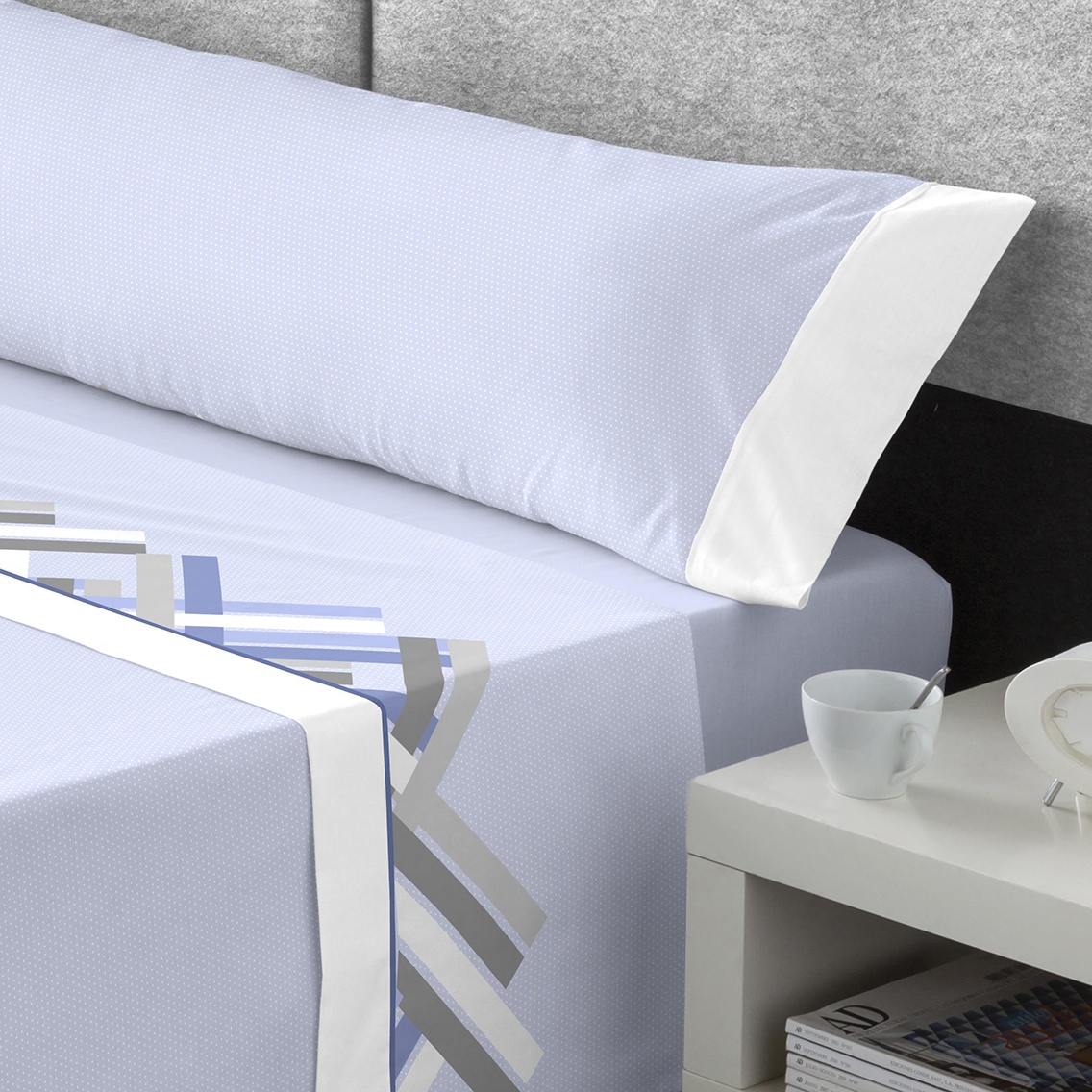 Aporta estilo y calidez a tu dormitorio con el juego de sábanas de franela Bernard. Su diseño moderno con detalles geométricos aporta un aire actual y elegante, perfecto para quienes buscan un ambiente contemporáneo.