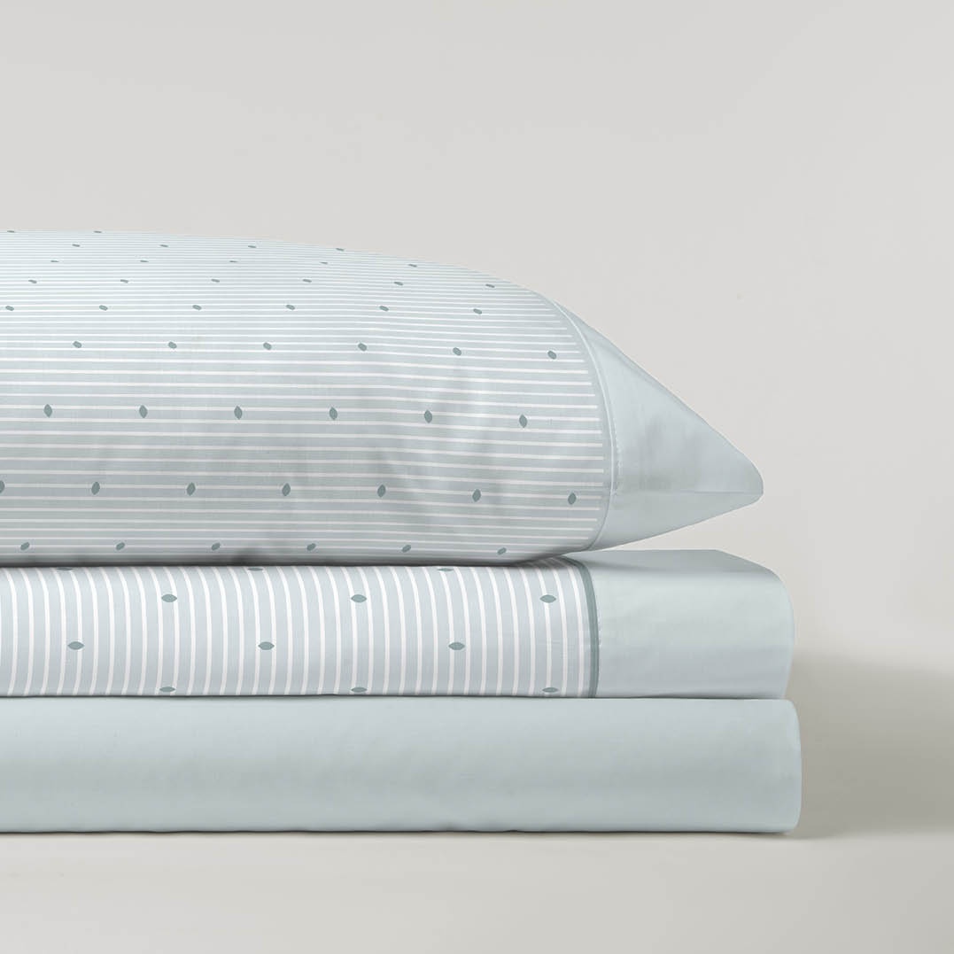 Un diseño delicado y actual que combina pequeñas figuras geométricas sobre un fondo claro con finas líneas horizontales, aportando frescura y armonía al dormitorio. La franela, cálida y suave al tacto, lo convierte en el juego ideal para las noches frías de invierno.