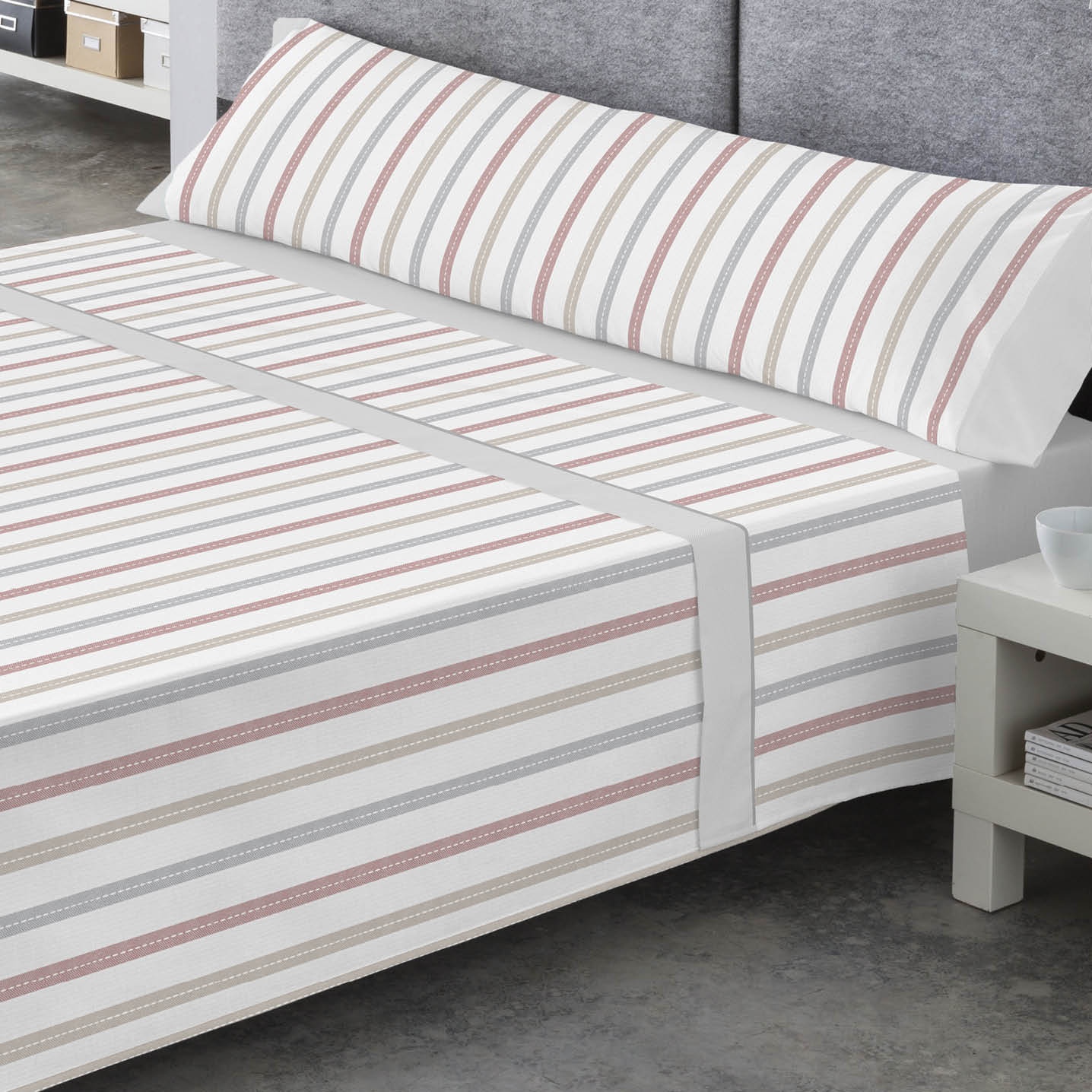 Dale personalidad y estilo a tu dormitorio con la sábana Lionel, confeccionada en 50% algodón y 50% poliéster. El diseño Lionel destaca por su patrón original y moderno, que aporta un toque elegante y contemporáneo a la habitación. Con líneas y formas cuidadosamente combinadas, esta sábana convierte la cama en el punto focal del dormitorio.