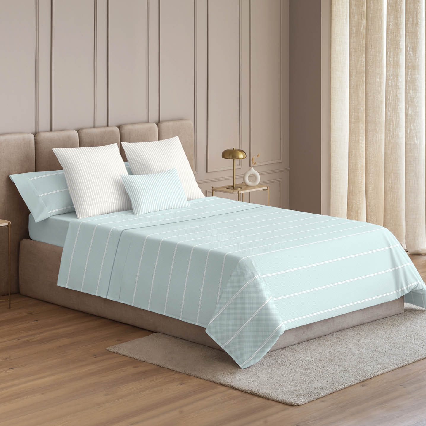 Renueva tu dormitorio con la sábana Marco, confeccionada en 50% algodón y 50% poliéster con 180 hilos, tejido de alta densidad ofrece un acabado suave y duradero. El diseño Kim aporta un toque moderno y elegante, convirtiendo la cama en el centro de atención del dormitorio.