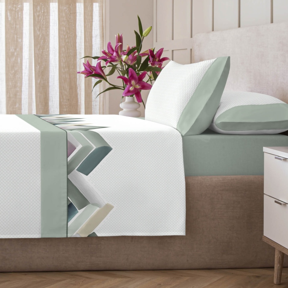 Renueva tu dormitorio con el juego de sábanas Rudy, su tejido 50% algodón y 50% poliéster combina suavidad, frescura y resistencia, perfecto para el uso diario sin perder forma ni color. El diseño atrevido del efecto acuarelado en la cenefa, aporta un toque moderno y elegante a cualquier habitación, creando un ambiente acogedor y armonioso.