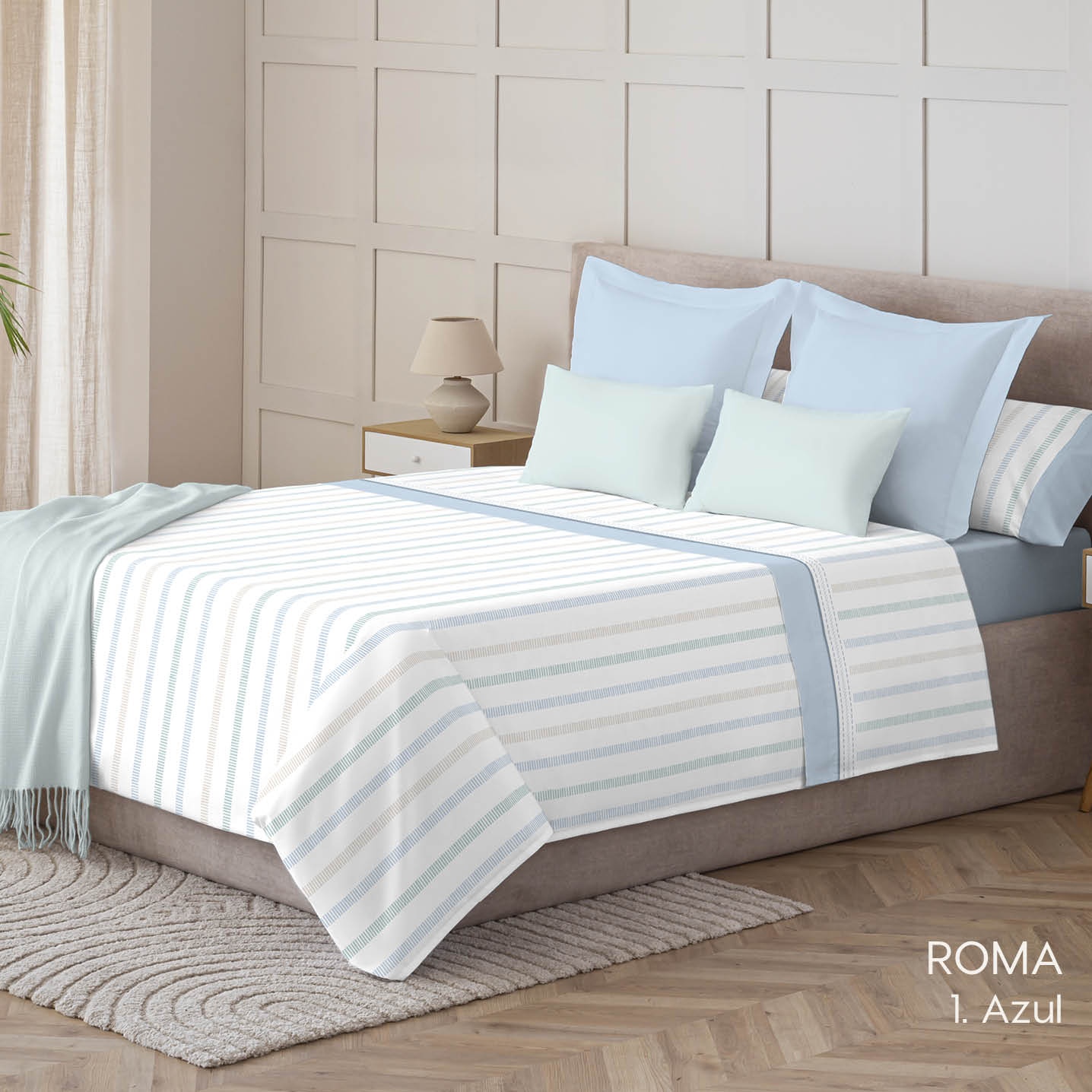 Transforma tu dormitorio con el juego de sábanas Roma, ideal para quienes buscan estilo y personalidad en cada detalle. Confeccionado en 50% algodón y 50% poliéster, asegurando un descanso fresco, cómodo y duradero.