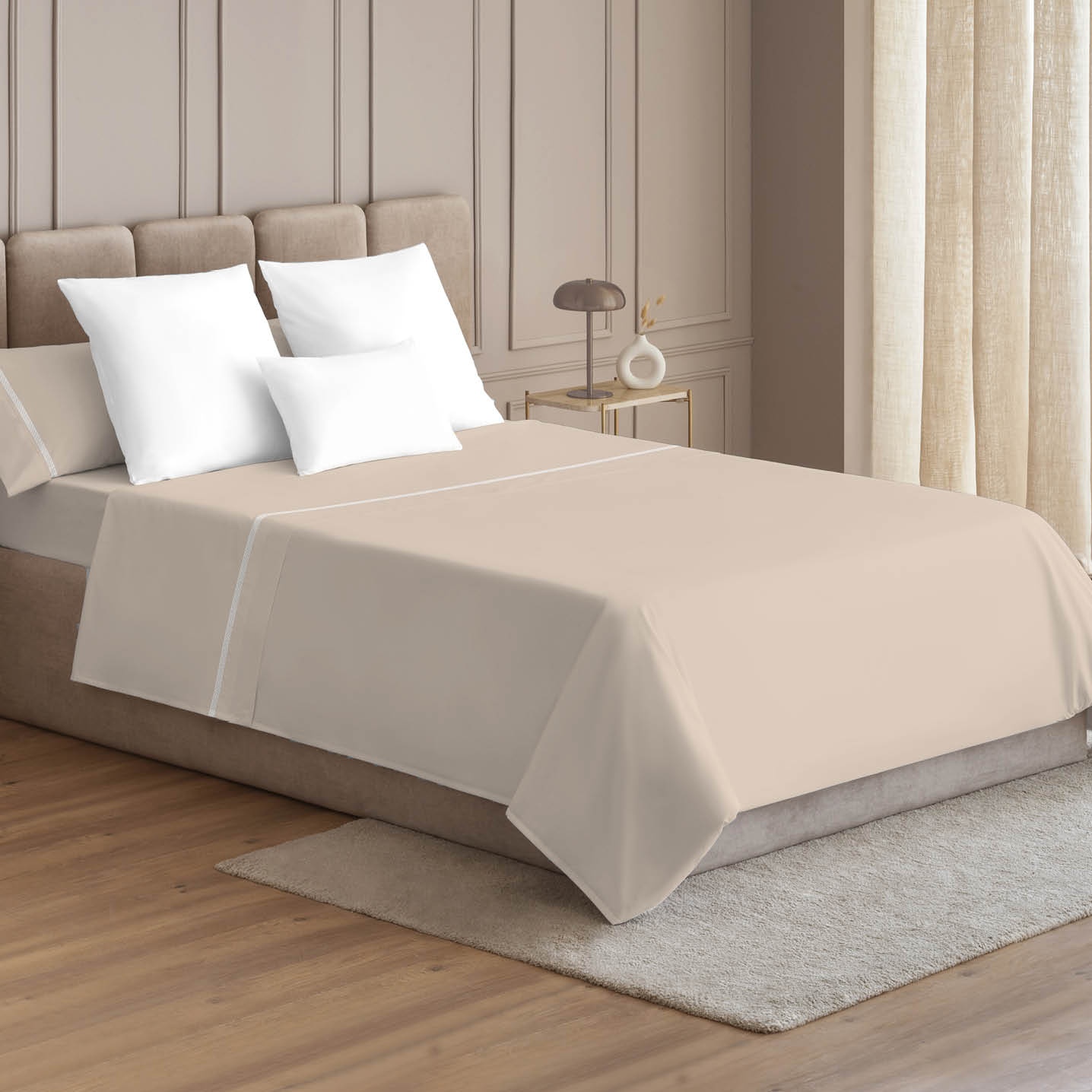 Descubre la elegancia y suavidad de nuestra sábana de percal 100% algodón, tejida con 200 hilos, que garantiza un acabado de alta calidad, fresco y duradero.