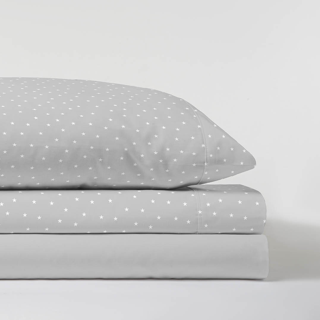 Encimera con diseño semiliso de pequeñas estrellas que adorna la cama de forma sutil. Confecionado con tela de 50 poliéster y 50 algodón.